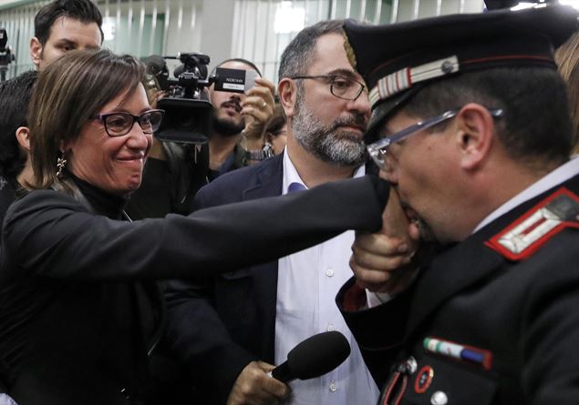 Sentenza Cucchi, il baciamano del carabiniere alla sorella Ilaria Ilaria Cucchi, il carabiniere le fa il baciamano. C'è grande commozione in aula dopo la lettura della sentenza che ha segnato la svolta per il caso di Stefano Cucchi. Le condanne e il riconoscimento dell'omicidio preterintenzionale arrivano alla fine di una lunga battaglia. " Una verità evidente che è stata negata per troppo tempo.
