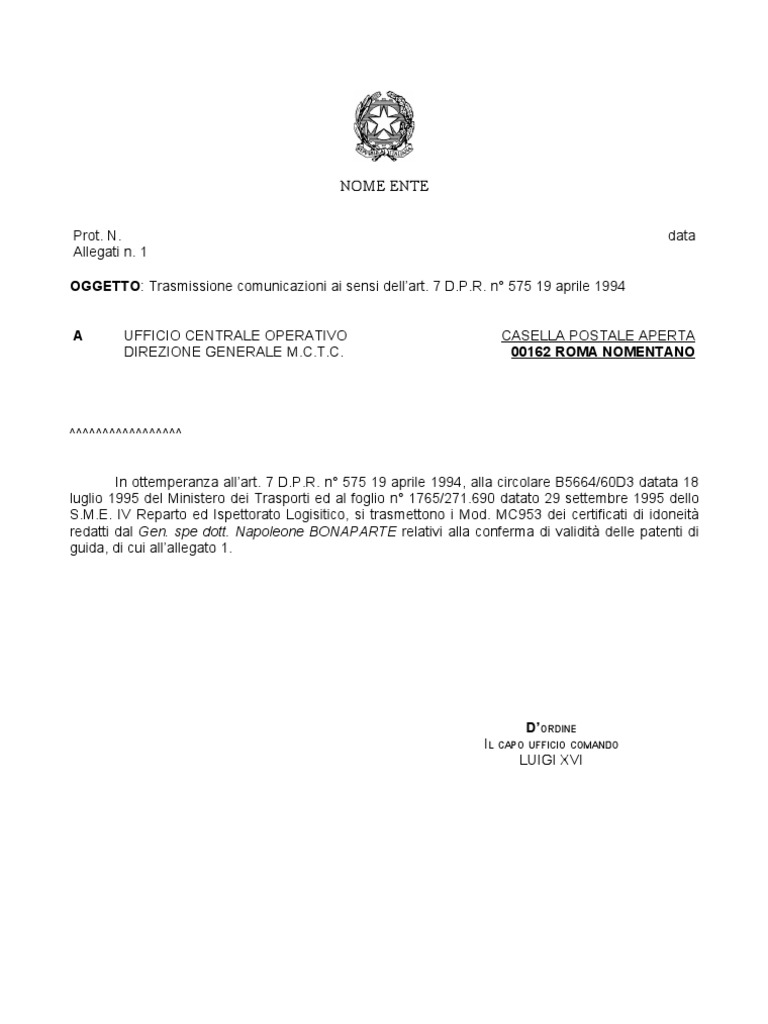 45 fac simile lettera integrazione documenti